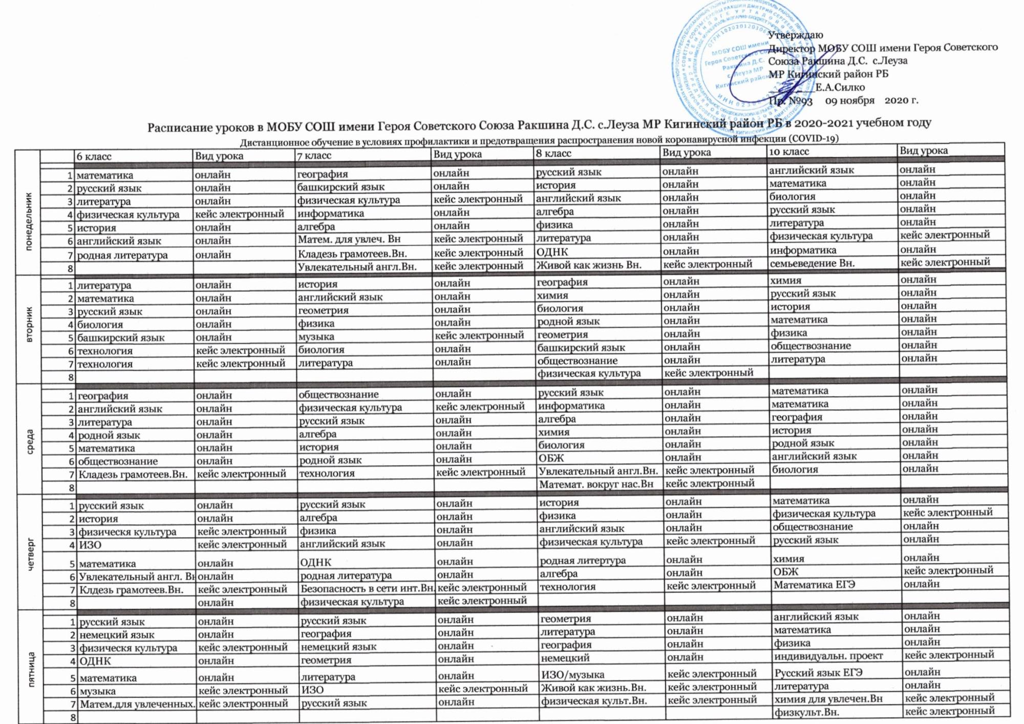 Проведение уроков осуществляется в соответствии с расписанием занятий.