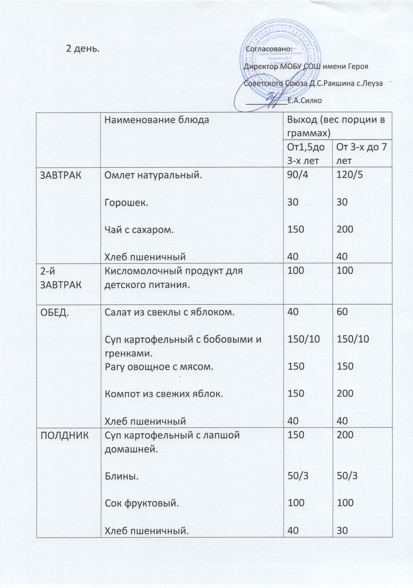 Ежедневное меню (ЛДП, фото)
