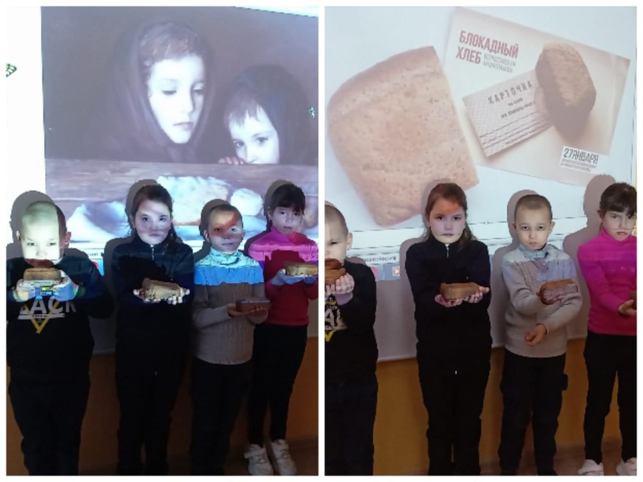 В начальной школе прошли классные часы «Блокадный хлеб: символ жизни и надежды ». Цель: расширить представления детей о героическом подвиге жителей Ленинграда; формировать чувство патриотизма. Ребята сделали символически открытки.