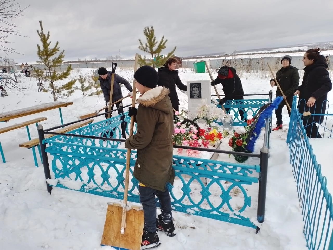 Акция по уборке памятников воинам-землякам, посвященной Дню защитника Отечества