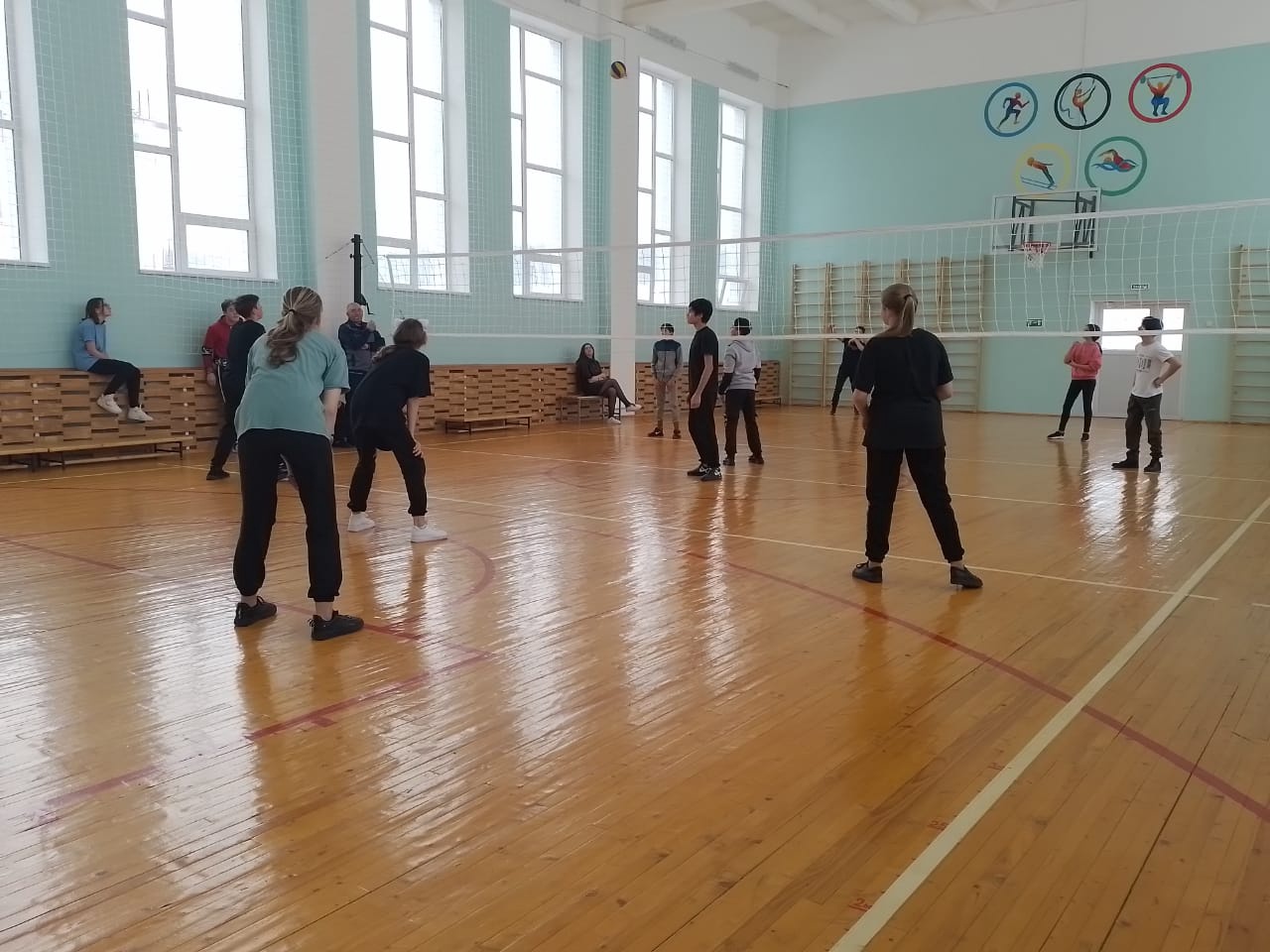 После единого Олимпийского урока обучающиеся 7-9 классов сыграли товарищеский матч по волейболу, а обучающиеся 5-6 классов провели матч по мини-футболу.