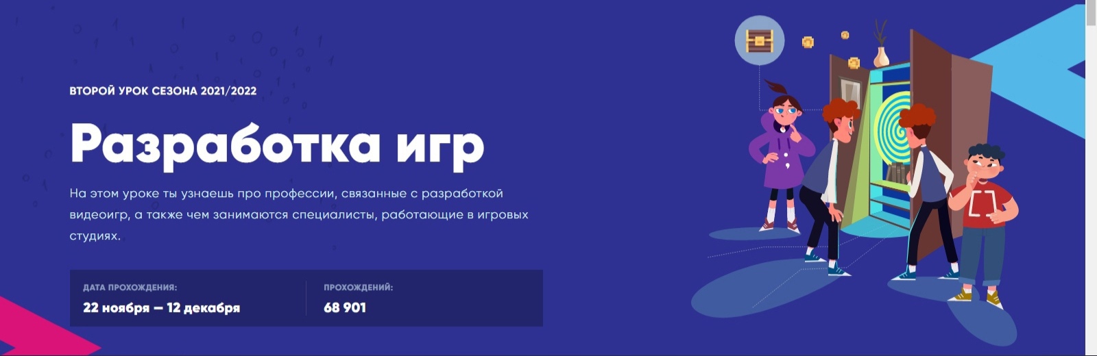 В рамках всероссийского образовательного проекта «Урок Цифры» в период с 22 ноября по 12 декабря 2021 года в общеобразовательных организациях района пройдет урок по теме «Разработка игр»