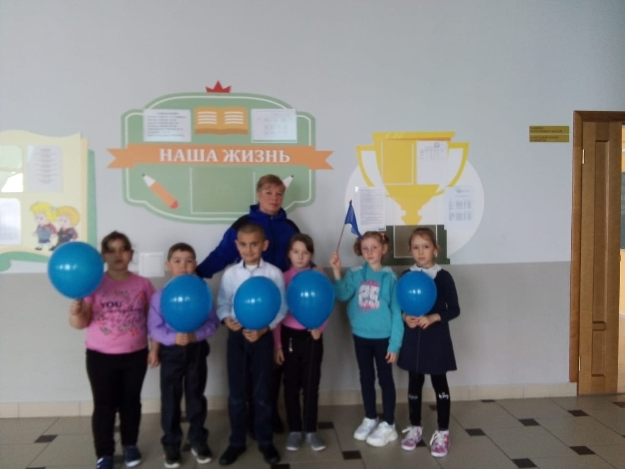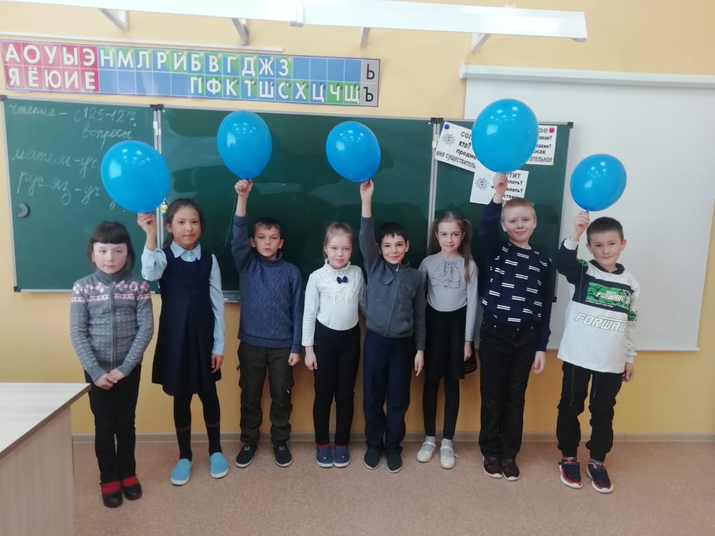 Школьники в дни весенних каникул посмотрели ролики с краткой информацией об аутизме. В первый учебный день после каникул в школе вывесили плакат  с эмблемой акции и синие воздушные шары.