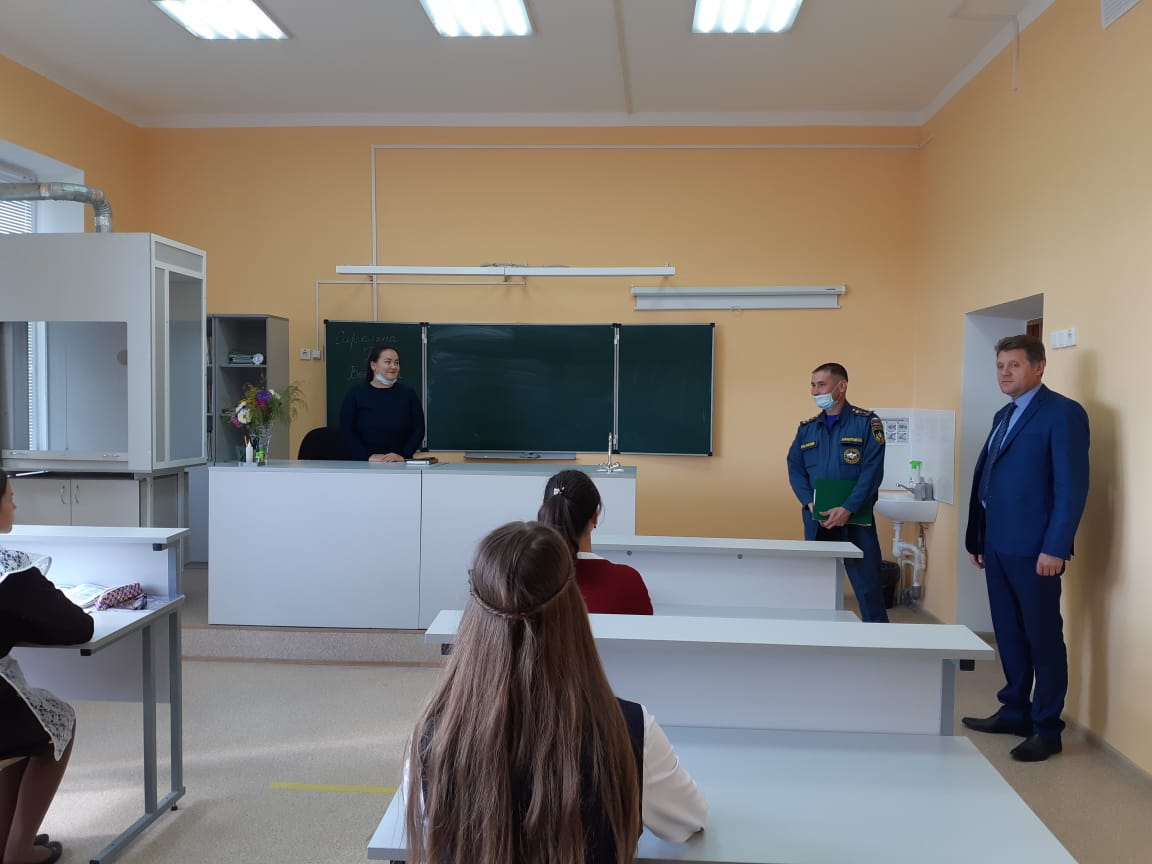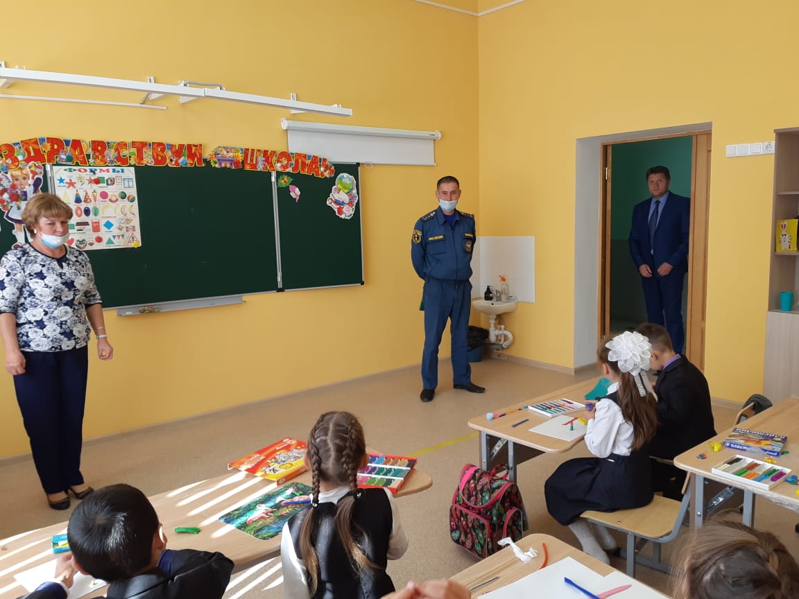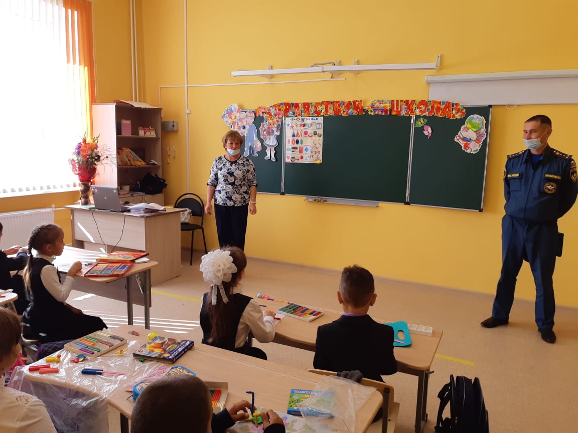 3 сентября по всей стране проводился  Всероссийский открытый урок «Основы безопасности жизнедеятельности» в Республике Башкортостан. В этот день в школу были приглашены сотрудники МЧС, которые провели  впервые в новой школе  учебную эвакуацию и беседу  по пожарной безопасности.