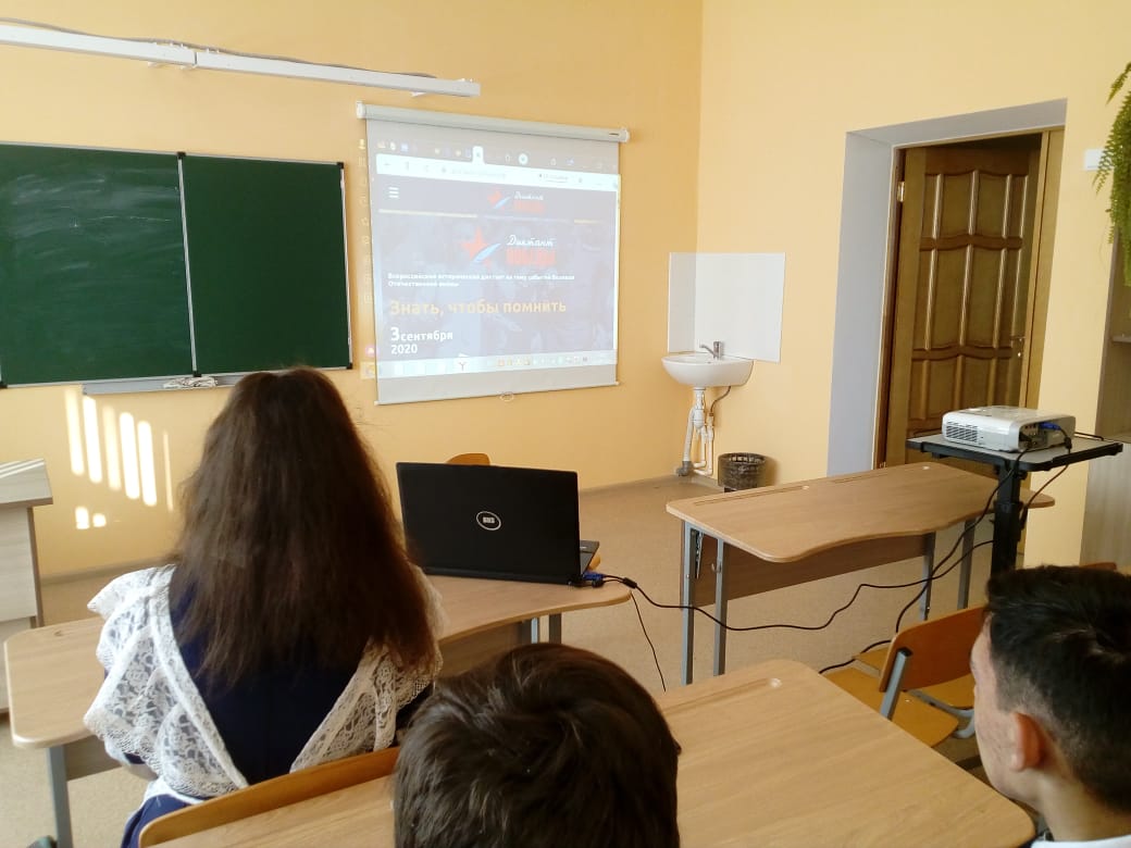 В 11 классе была показана документальная лента С.Майорова, в которой звучат стихи поэтов, не вернувшихся с войны, в исполнении современных популярных артистов. Старшеклассникам рекомендован домашний просмотр кинофильма «Судьба человека» - Великое кино режиссера С.Бондарчука по одноимённому рассказу М.Шолохова. В 10 классе провели Диктант Победы. 11 класс провел акцию «Цветы Победы». Выпускницы в память о тех, кто сражался за мир и победил во Второй мировой войне, спустили на воду венок из живых цветов, перевязанных красно-беложелтой лентой, ставшей символом Дальневосточной Победы.