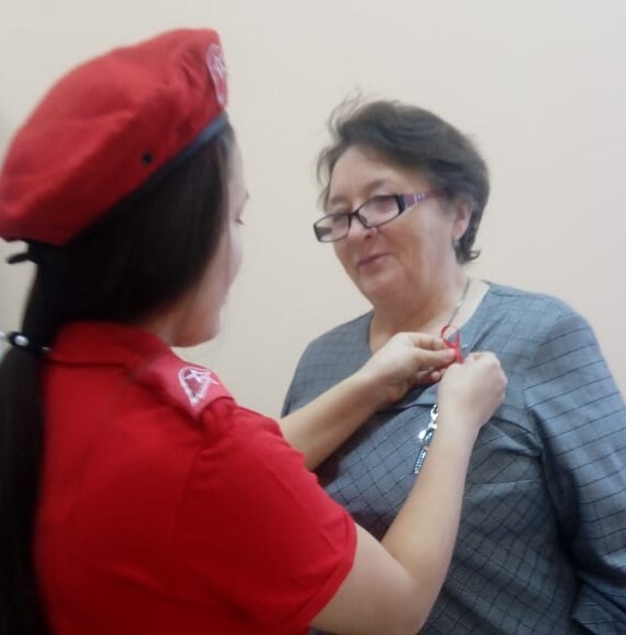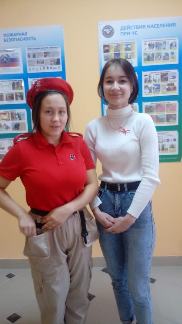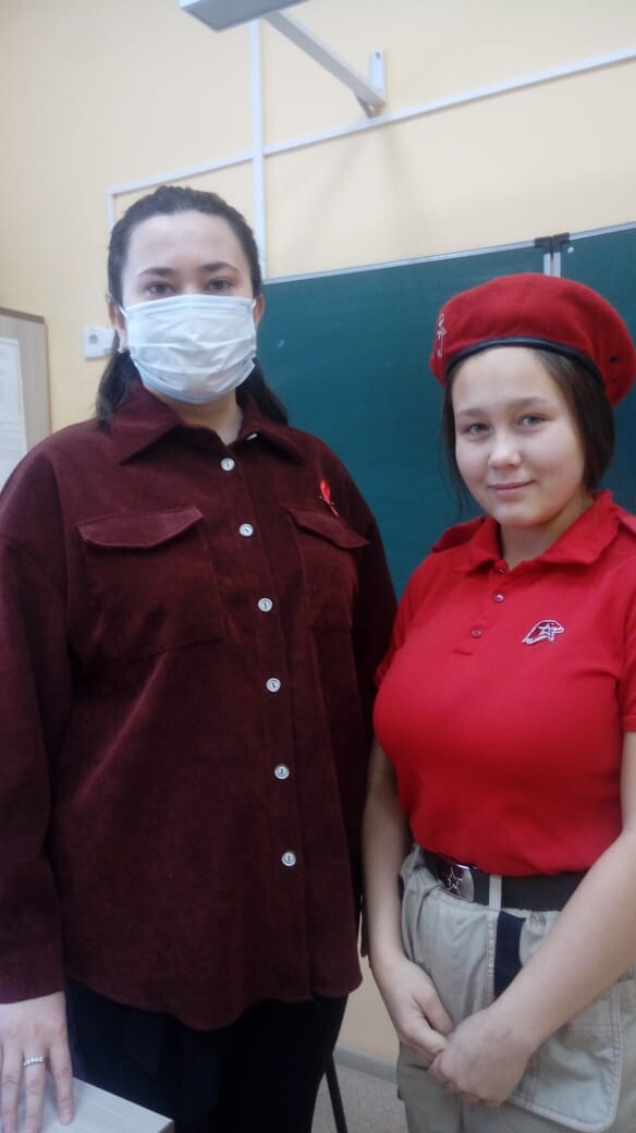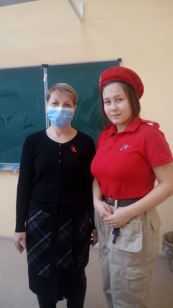 1 декабря юнармейцы раздавали в школе красные ленточки - символ Дня борьбы со СПИДом. Кроме того, в классах проводятся мероприятия по профилактике ВИЧ-инфекции наряду с осуществлением неотложных мер по борьбе с COVID-19